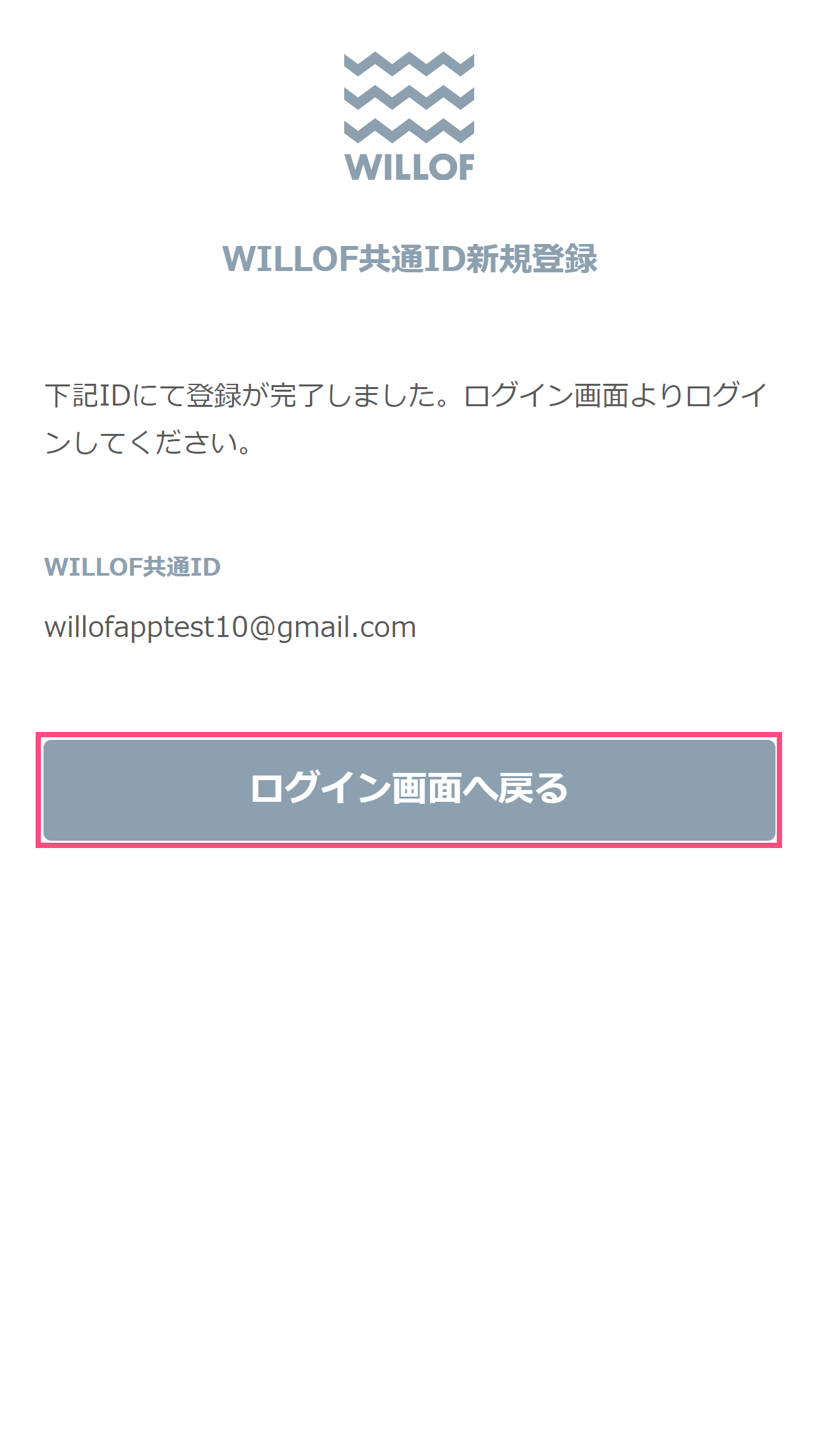 5. WILLOF共通ID情報を入力し「登録」を選択